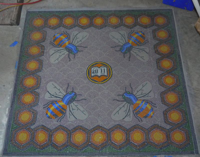 I’m heading down to Saint Louis on the weekend of the 17th to check in with my father; he has been having a few health problems so I decided to visit. I’m excited to note that my visit coincides with the opening of the new BWorks building on Menard in Soulard. BWorks is a not for profit that works with kids, teaching them life skills, helping them build self confidence and giving them mentoring opportunities — they concentrate on teaching kids to repair and refurbish bikes, learn stuff about computers and write and illustrate and publish their own books — bikes, bytes and books! They hired me to make the mosaic in their entry; the bees are symbolic of their mission. I am 90% sure I can be there at the ribbon cutting on the 17th; if you are in town, stop by! Details at Bworks.org.